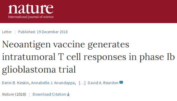 NeoVax疫苗:发表在《自然》杂志的一项研究显示,为个性化的“新抗原”疫苗可以刺激对胶质母细胞瘤的反应,疫苗产生的免疫T细胞会到达脑肿瘤中,使癌细胞周围产生热的炎症环境,可显著改善胶质母细胞瘤患者的生存期,中位生存期也达到了16.8个月!