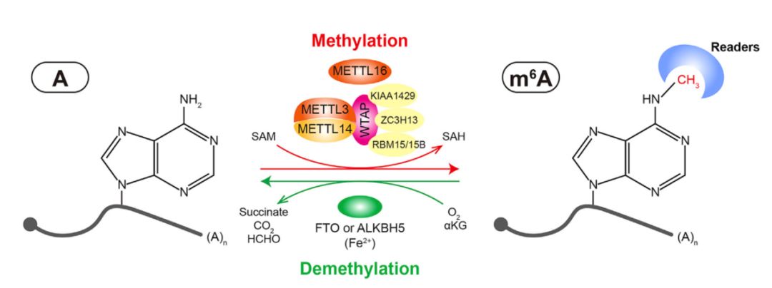 RNA的m6A修饰由修饰酶和去修饰酶动态调控,这些酶被形象的称为“Writer”和“Eraser”。