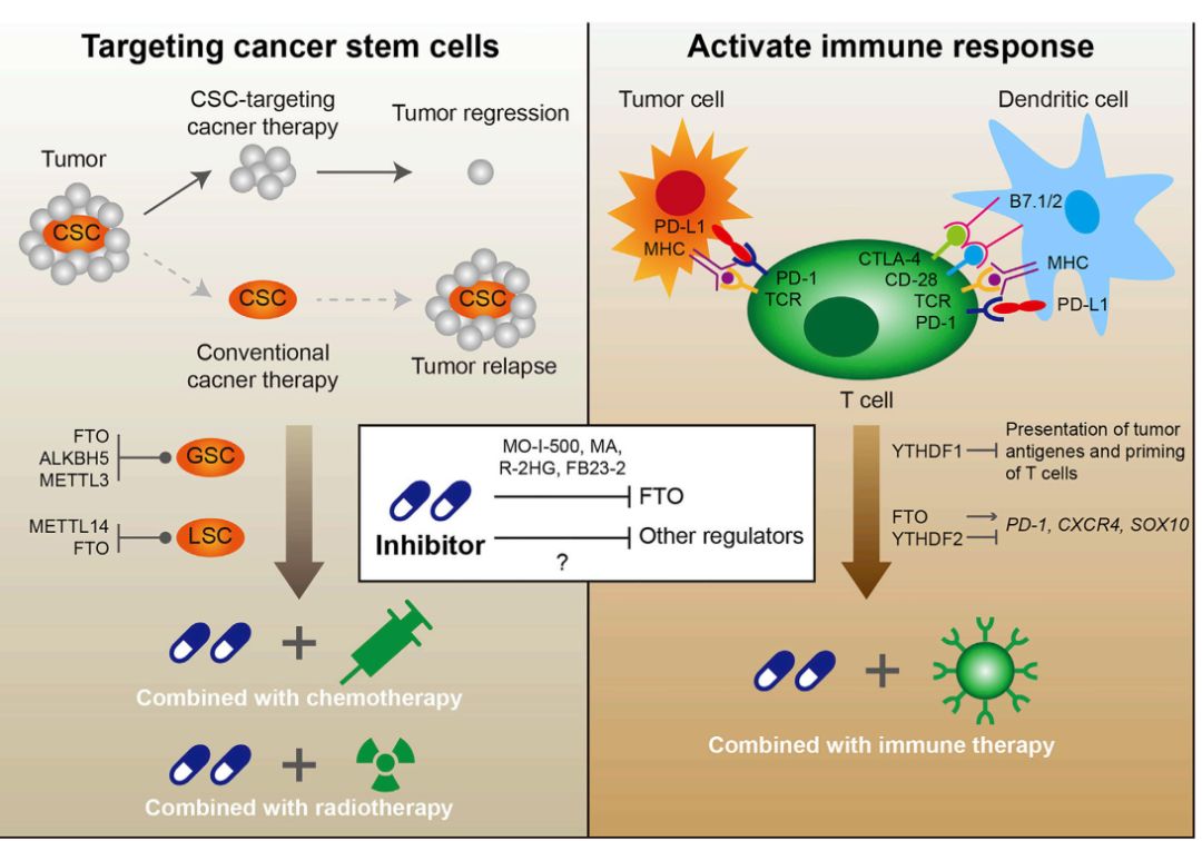 免疫治疗是近期肿瘤治疗的热点,m6A修饰也参与一些肿瘤免疫治疗相关基因的表达调控,包括PD-1,CXCR4等等,靶向干预这些基因RNA的m6A修饰也可以在肿瘤免疫治疗中开辟新的思路。