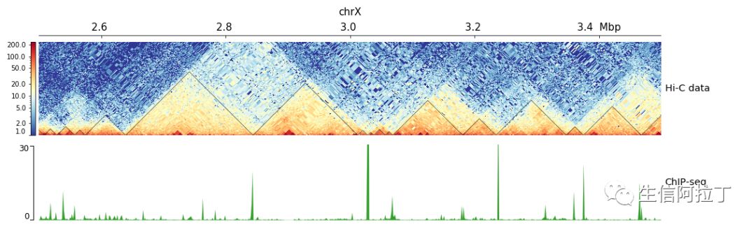 pyGenomeTracks的使用方法很简单易懂,首先需要生成相应的配置文件hic_track.ini(可以自己编辑也可以用make_tracks_file命令自动生成),然后用pyGenomeTracks命令对特定区域生成相应的hic_track.pdf便可。