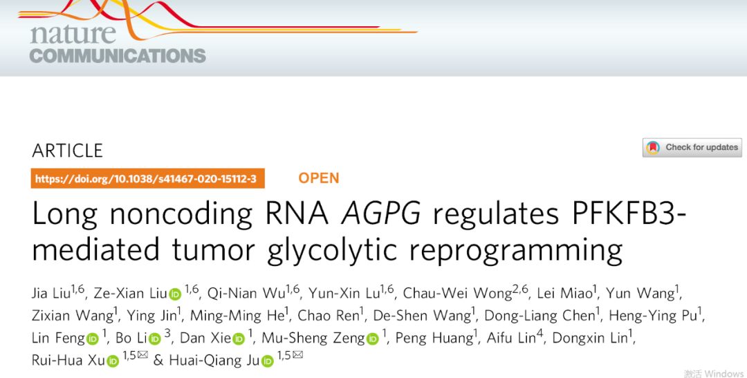 Nat Comm | 中山大学徐瑞华/鞠怀强团队揭示lncRNA调控肿瘤糖酵解重编程的作用及机制