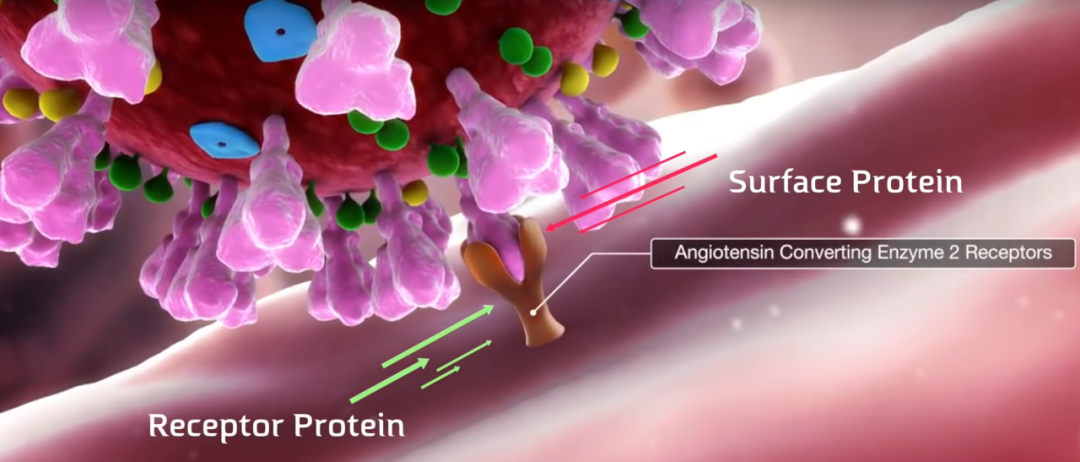 从结构上来说,病毒由一个核酸长链(DNA 或 RNA)和蛋白质外壳构成。在感染宿主细胞的过程中,病毒表面的蛋白会与人体表面的受体结合,就像一只手抓住了门把手。而在新冠病毒中,「这只手」就是病毒表面的 S 蛋白,它的目标就是抓住「门把手」ACE2 受体。