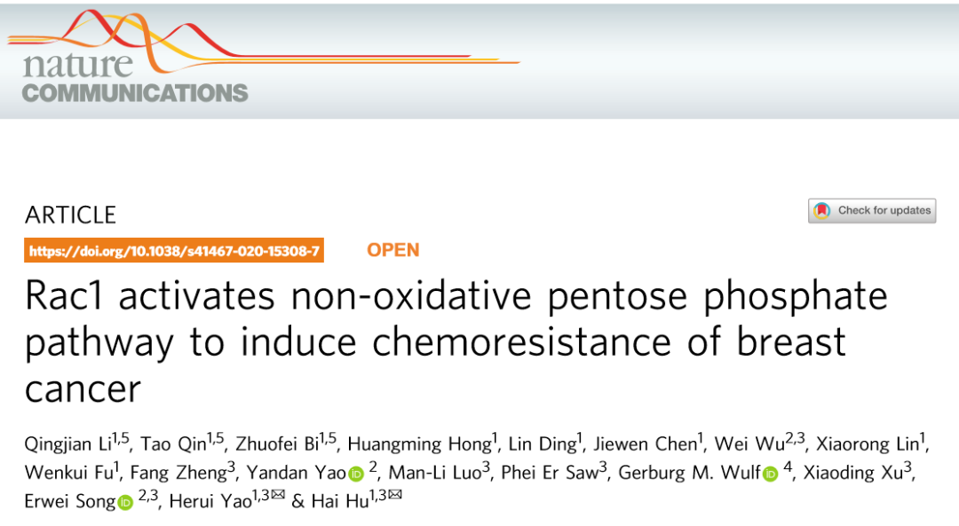 Nat Comm | 中山大学胡海/姚和瑞联合团队发现乳腺癌多药耐药代谢调控机制!