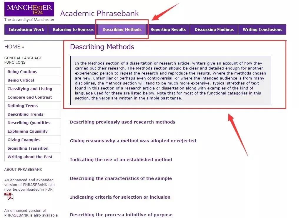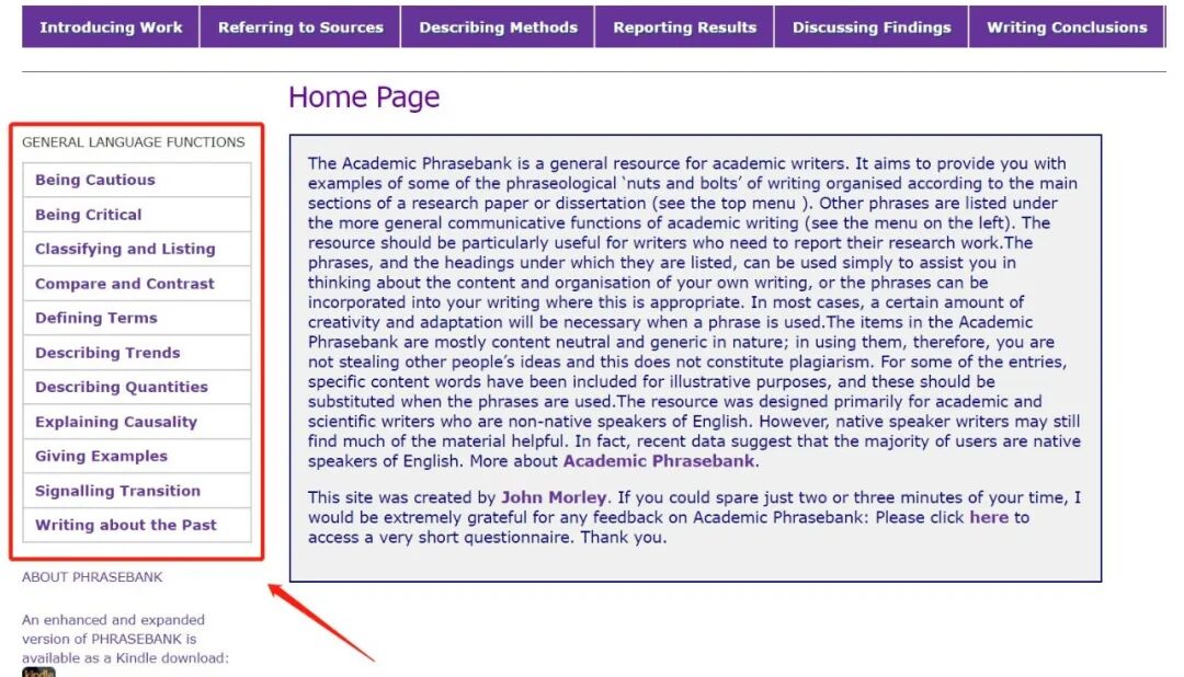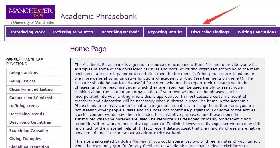 Academic Phrasebank网站是由曼彻斯特大学的博士John Morley创办的,里面提供了大量的SCI写作句型和短语,参考材料都是来自于英语母语者的文章。通过您的灵魂注入和添加,一篇SCI文章就完成啦!