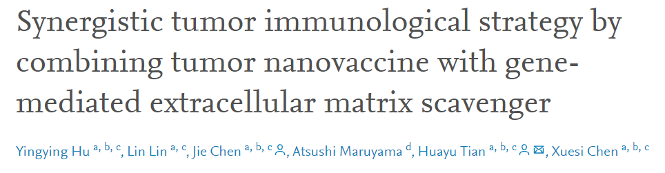 [5] Yingying Hu, et al., Synergistic tumor immunological strategy by combining tumor nanovaccine with genemediated extracellular matrix scavenger. Biomaterials. 2020.