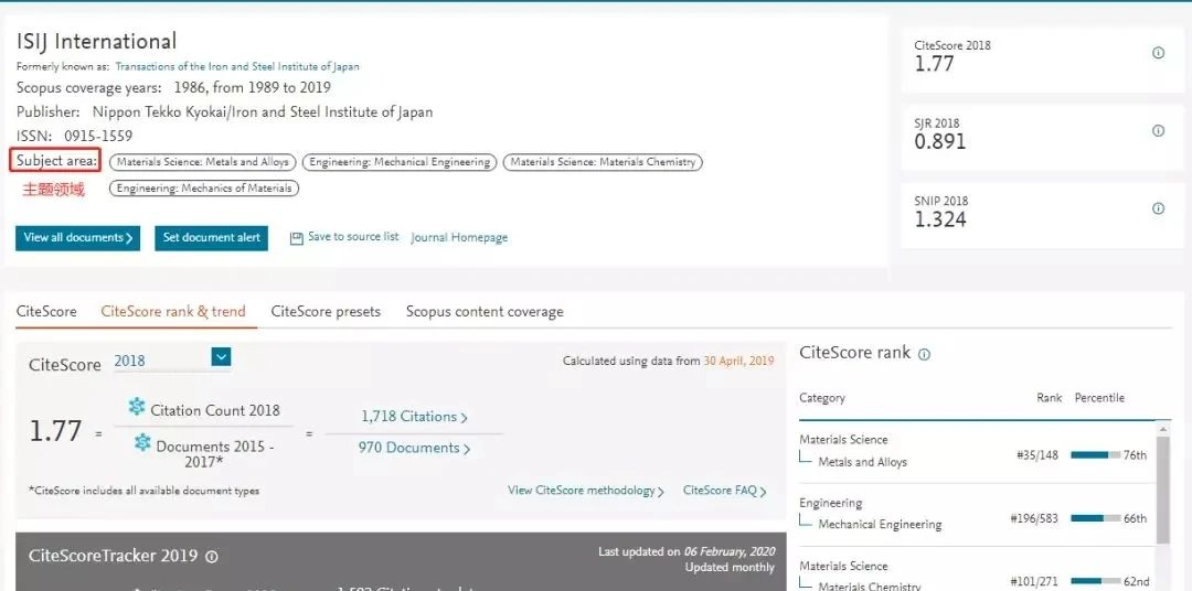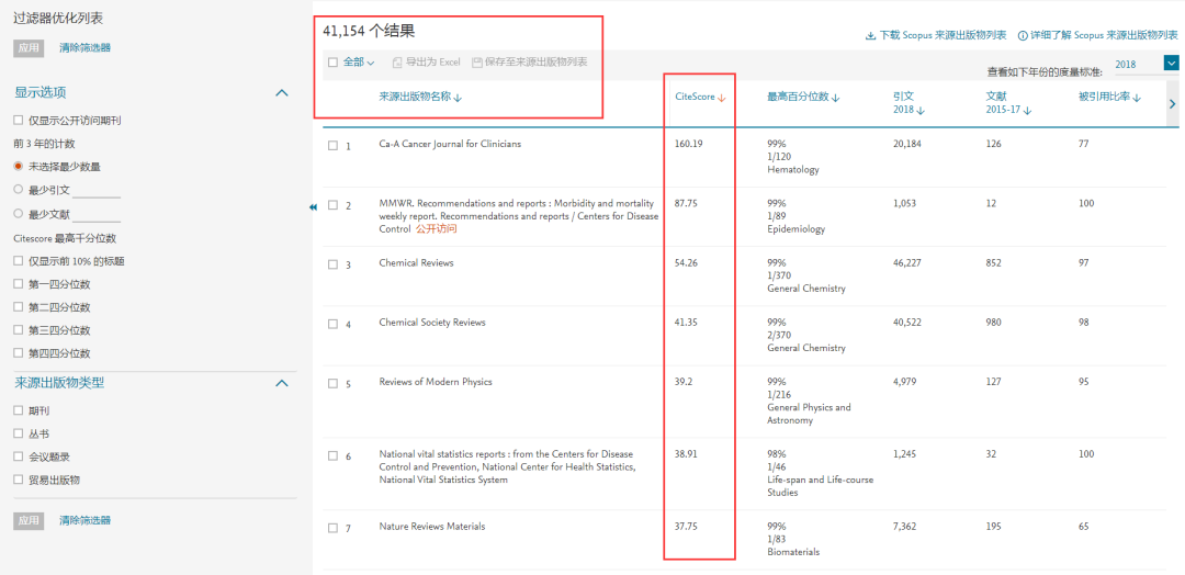 如果你想要了解本技术领域内的刊物情况,可以通过Scopus首页的Sources进入来源期刊界面。可以直接通过名称检索具体期刊,这时候可能有小伙伴要问,我不知道该领域的重点刊物怎么办?很简单,Scopus将收录的刊物划分成27个一级学科和334个二级学科,只需要按照学科划分进行查找就可以了。