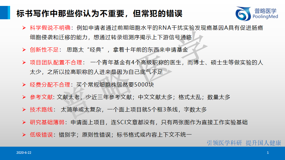 普略医学国自然课程回顾——浅谈国自然标书撰写技巧