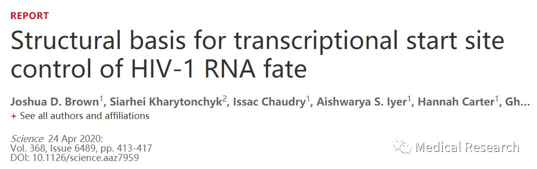 [4] Joshua D. Brown, et al., Structural basis for transcriptional start site control of HIV-1 RNA fate. Science. 2020.