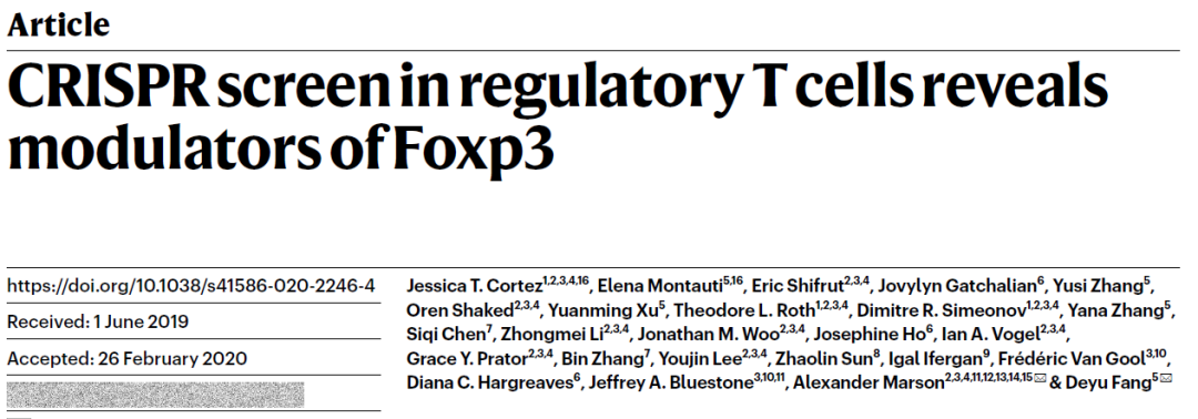 [3] Jessica T. Cortez, et al., CRISPR screen in regulatory T cells reveals modulators of Foxp3. Nature. 2020.